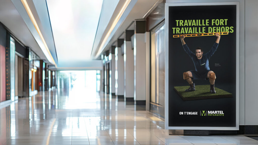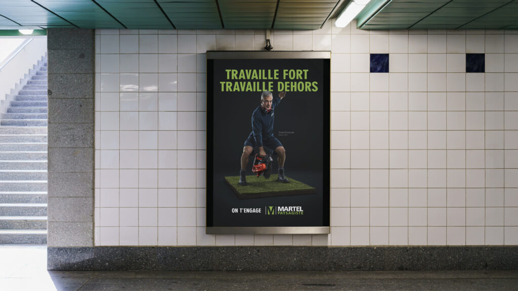 Positionner le métier de paysagiste comme un travail pour des gens qui mettent du cœur à l’ouvrage. En assumant l’effort physique et les conditions extérieures, la campagne visait à séduire des candidats qui valorisent la résilience et le fait de travailler fort.
